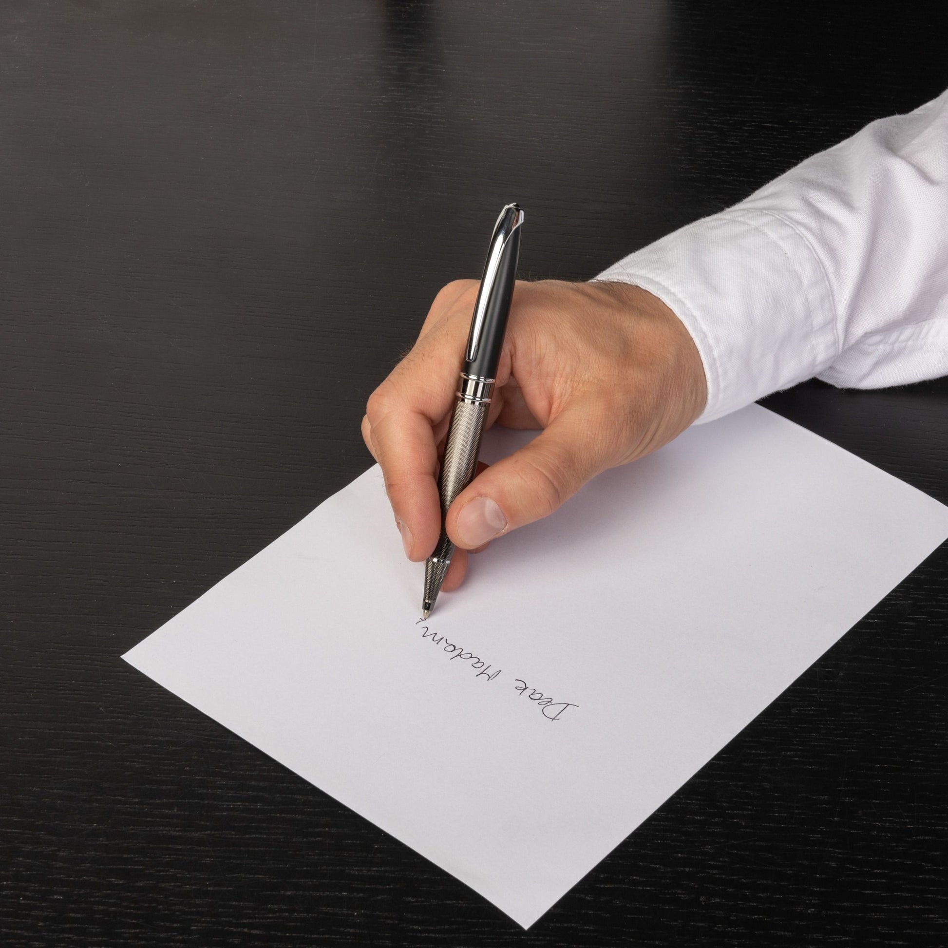 The “Abbey” pen is built on one of Cerruti’s writing line most iconic silhouette. It is now reinvented mixing matt black lacquer finishes with a diamond cut engraved lower barrel, modern & elegant.