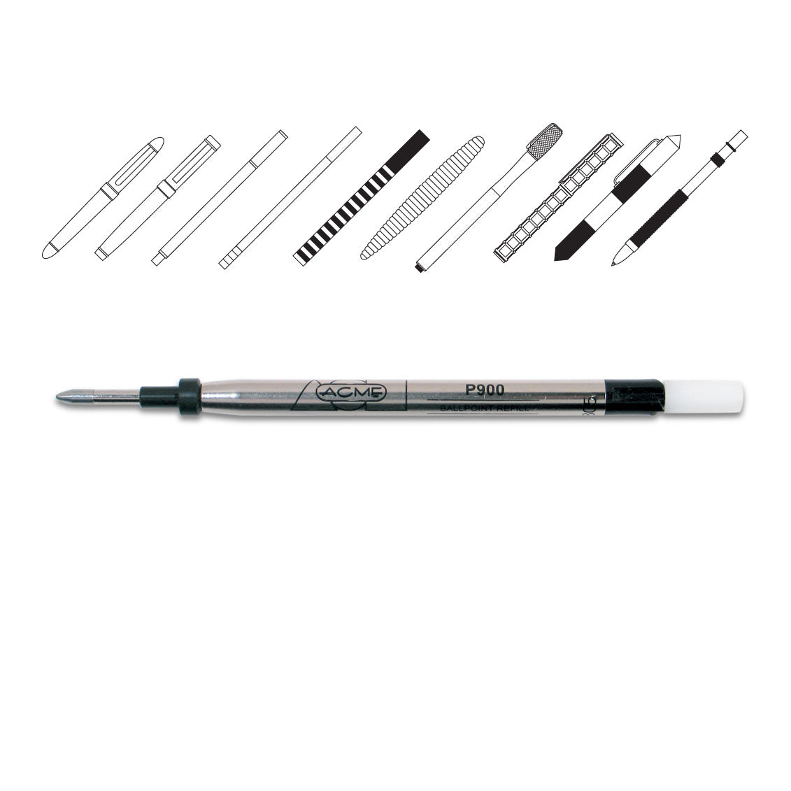 ACME Studio’s P900 “M” Ballpoint Refill, comes in black ink. It is packaged in a sealed plastic sleeve.