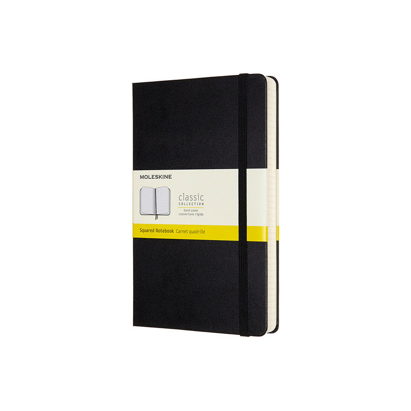 The basic, yet classic hard cover Moleskine notebook is one of the best selling Moleskine notebooks. This is a reliable travel companion, perfect for writing, recording your thoughts and passing notes, which makes it highly sought-after by creative professionals and lovers of writing. Every Moleskine notebook is thread bound and has a cover with rounded corners, acid-free paper, a bookmark, an elastic closure and an expandable inner pocket that contains Moleskine's history. Available in five sizes - pocket, medium, large, extra large and A4 - in a great range of colours, as well as classic black, with a variety of styles, including dot grid, grid, ruled and plain, there is a classic hard cover Moleskine notebook for every writer!