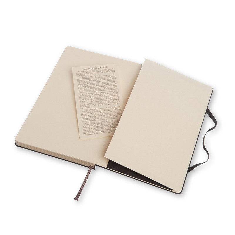 Moleskine History Inside. Expandable Inner Pocket. Elastic Closure. Bookmark.