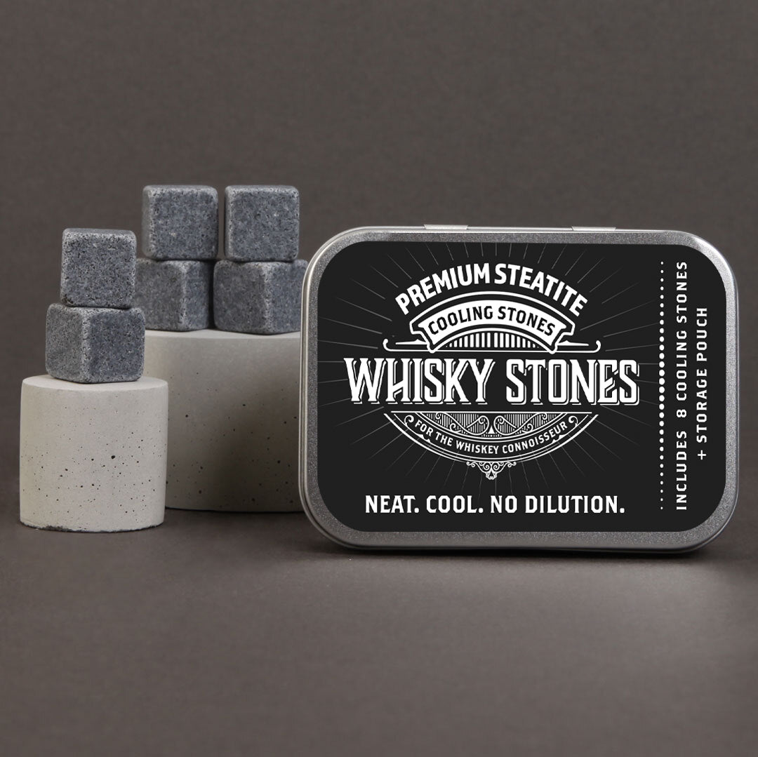 Drop them in your Whisky or any tipple, to chill your drink without diluting. Made from 100% Soapstone, which harbours less bacteria and fewer impurities than ice. These Whisky Cooling Stones can be reused time and time again, just wash and freeze again in their bag. Suitable for: The sophisticated drinker. The spirit collector. The man of the world.