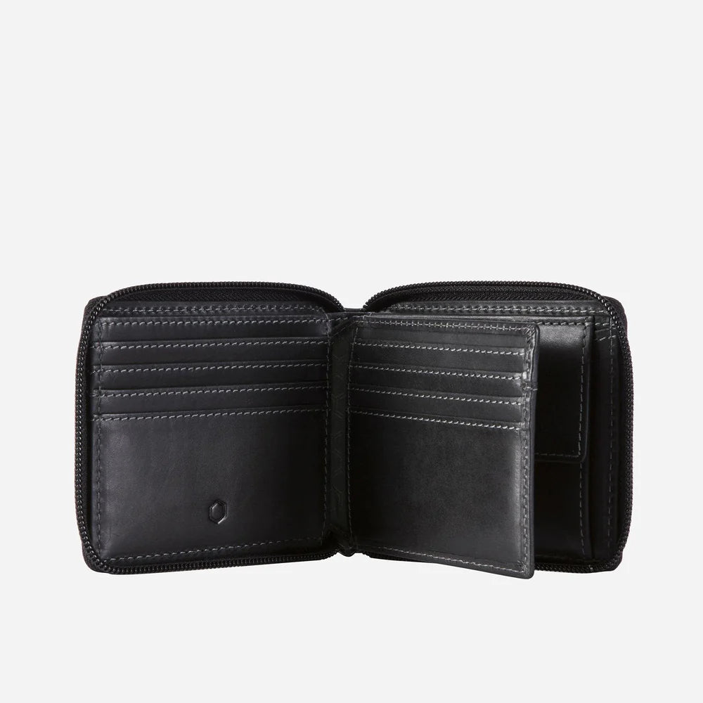 LARGE ZIP AROUND WALLET WITH COIN, BLACK