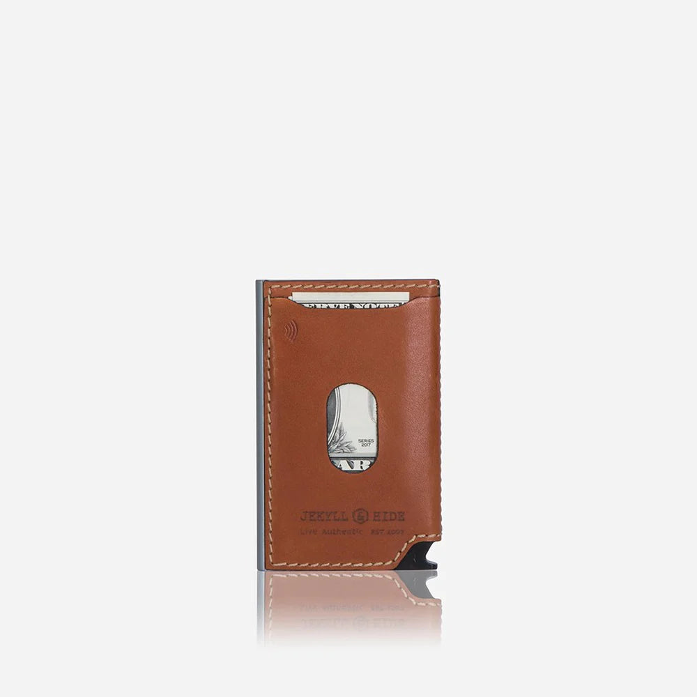 This is what we call a show-off piece. Keep your valuable cards safe within this part-leather, part-metal frame card holder with RFID wallet until you need them. The pop-up function is sure to be the envy of every shop teller. Our minimally treated, vegetable-tanned leather is crafted to patina over time, ensuring it develops a look that is uniquely yours.