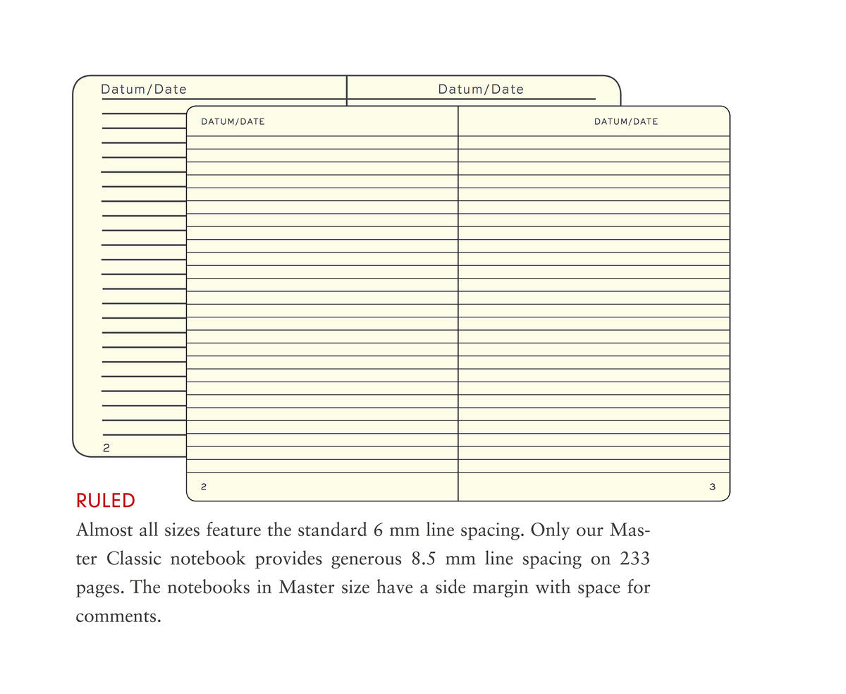 • Softcover: our notebooks with a flexible cover. They have 121 pages with 80 g/m² paper and all the same features from the hardcover classic.
