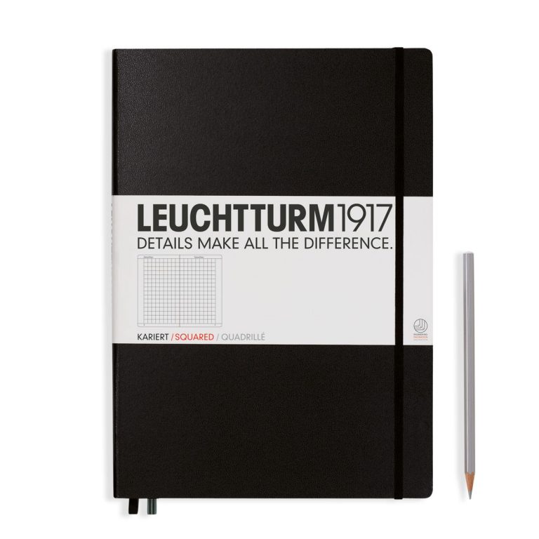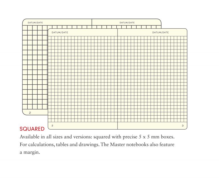 The classic: Master notebook. Larger than A4, it can hold loose sheets between the pages and in the expandable pocket without the edges protruding. The Master Classic notebook has 233 non-bleeding, acid-free 100 g/m2 pages. This means that our Master Classic notebook is an indispensable treasure for all notebook-lovers. Choose between red and black covers and our 4 rulings (ruled, squared, dotted or plain).