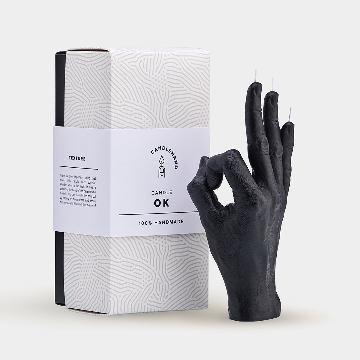 As the saying goes - when things are not going so well, there's always a candle to remind you it's gonna be OK. OK, maybe there's no such saying, but there definitely should be. Just look at it - a handmade, life-sized, realistically shaped OK, that smells so pleasant, comes in different colours and is packed so nicely. Things just got to be OK! Handmade in Lithuania.