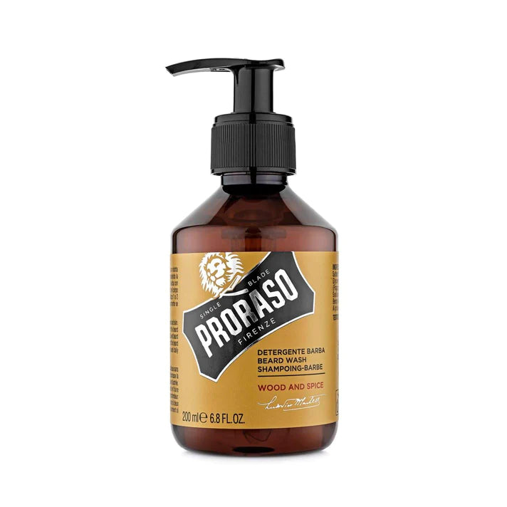 Proraso Beard Wash is a gentle, yet effective, cleanser for both beard and skin. Using plant-based surfactants, this low-foaming formula works to soften and smooth even the most bristly of beards while removing dirt, debris and odours. The masculine Wood and Spice fragrance features the enveloping warmth of fine woods, with a cedar heart and notes of rock rose. The spicy scent of cumin and saffron mix with mildly sweet vanilla. An intense and rewarding aromatic sensation gives the feeling of comfort and ease. Made in Italy. 100ml