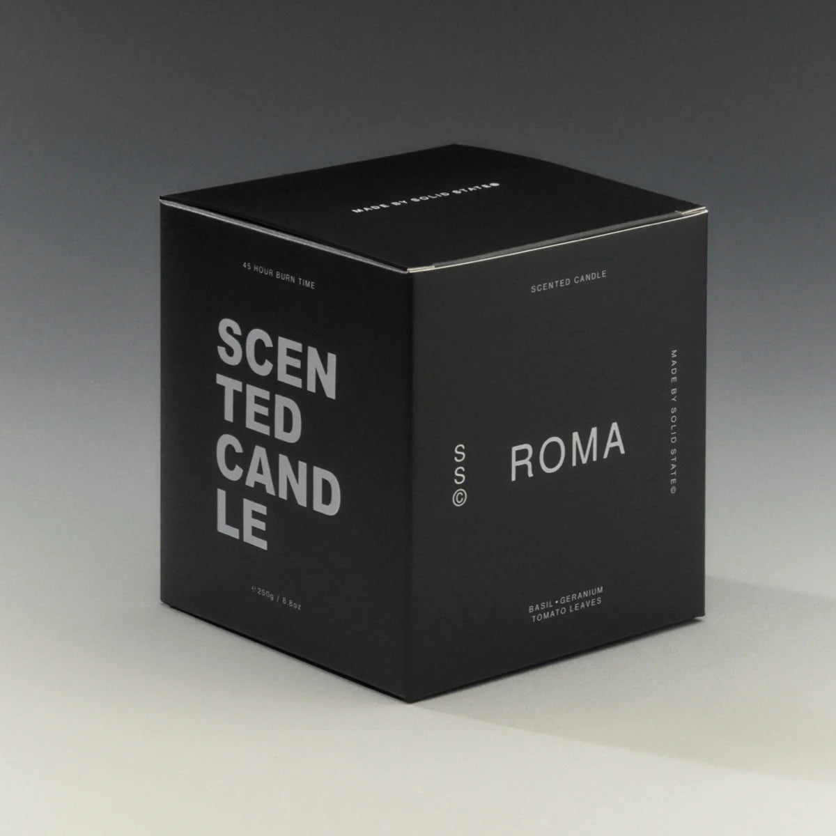 Roma doesn't whisper sweet nothings in your ear; it yells across the bar. It smells like the type of candle a tomato would buy if a tomato bought candles. Featuring Basil, Geranium and Tomato Leaves Roma is fresh and herbaceous.