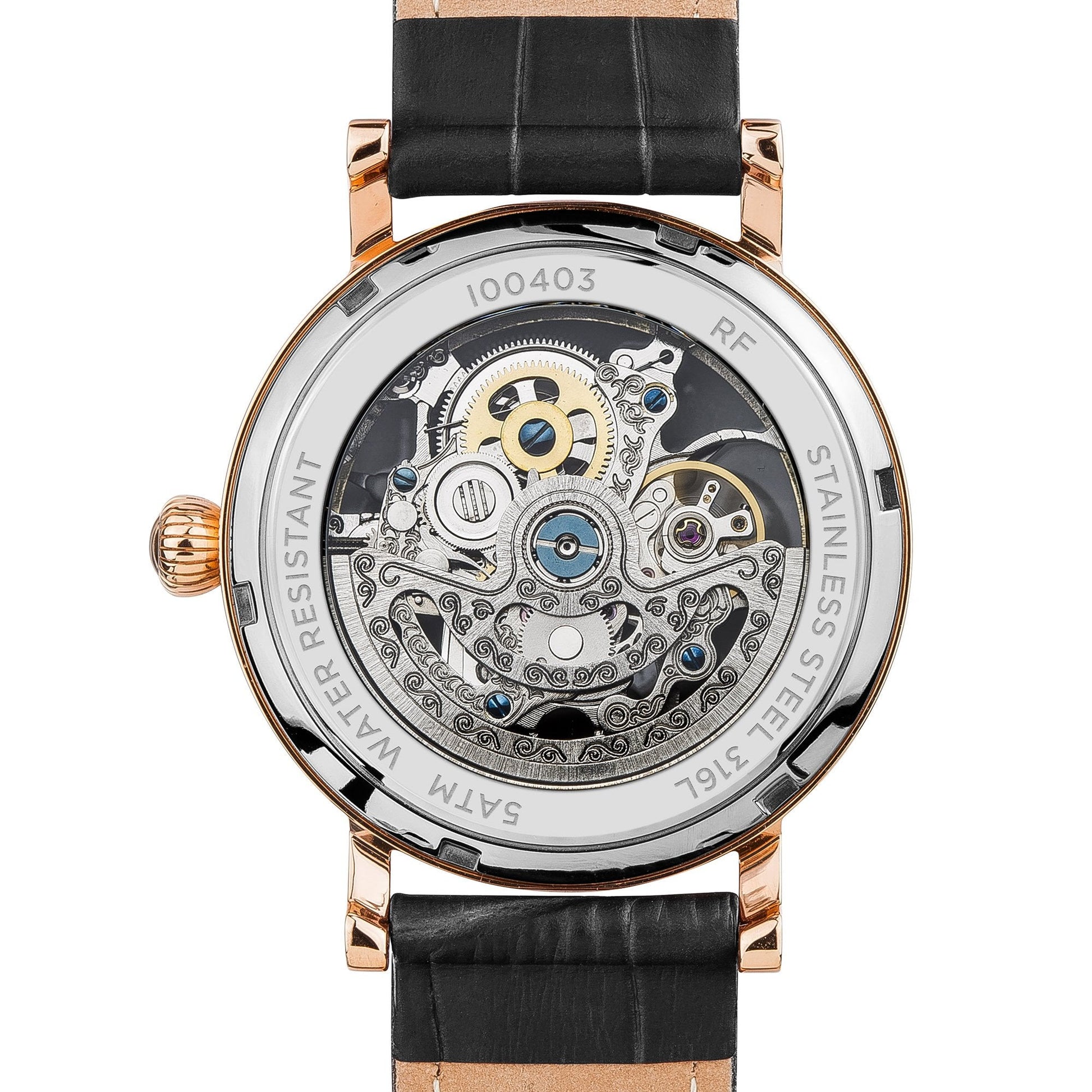 The Herald I00403 watch is an exquisite time piece with a captivating skeletonised movement, finished to the highest standard by stainless steel rose gold casing.