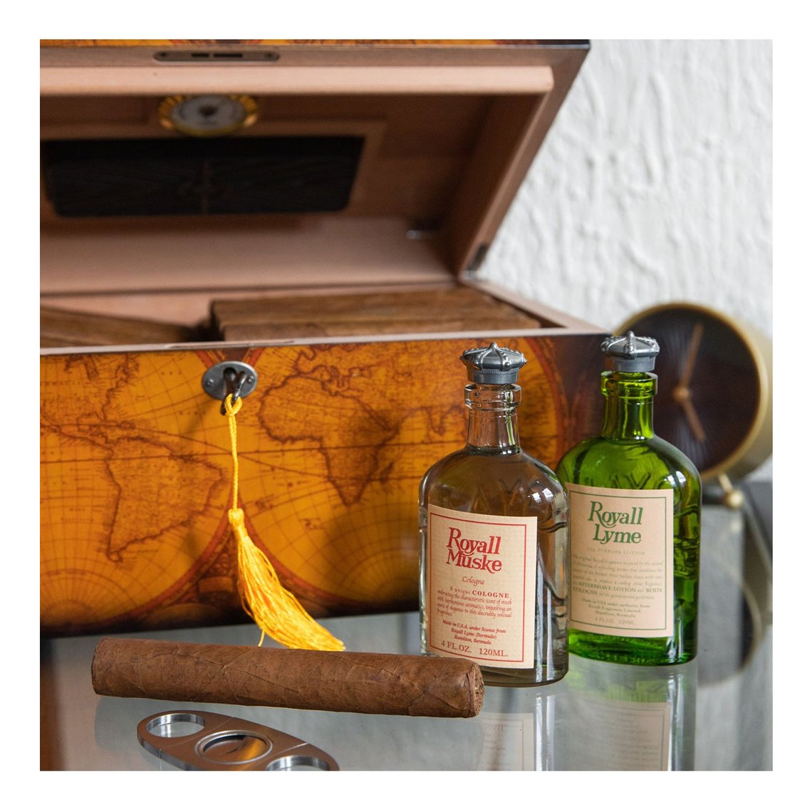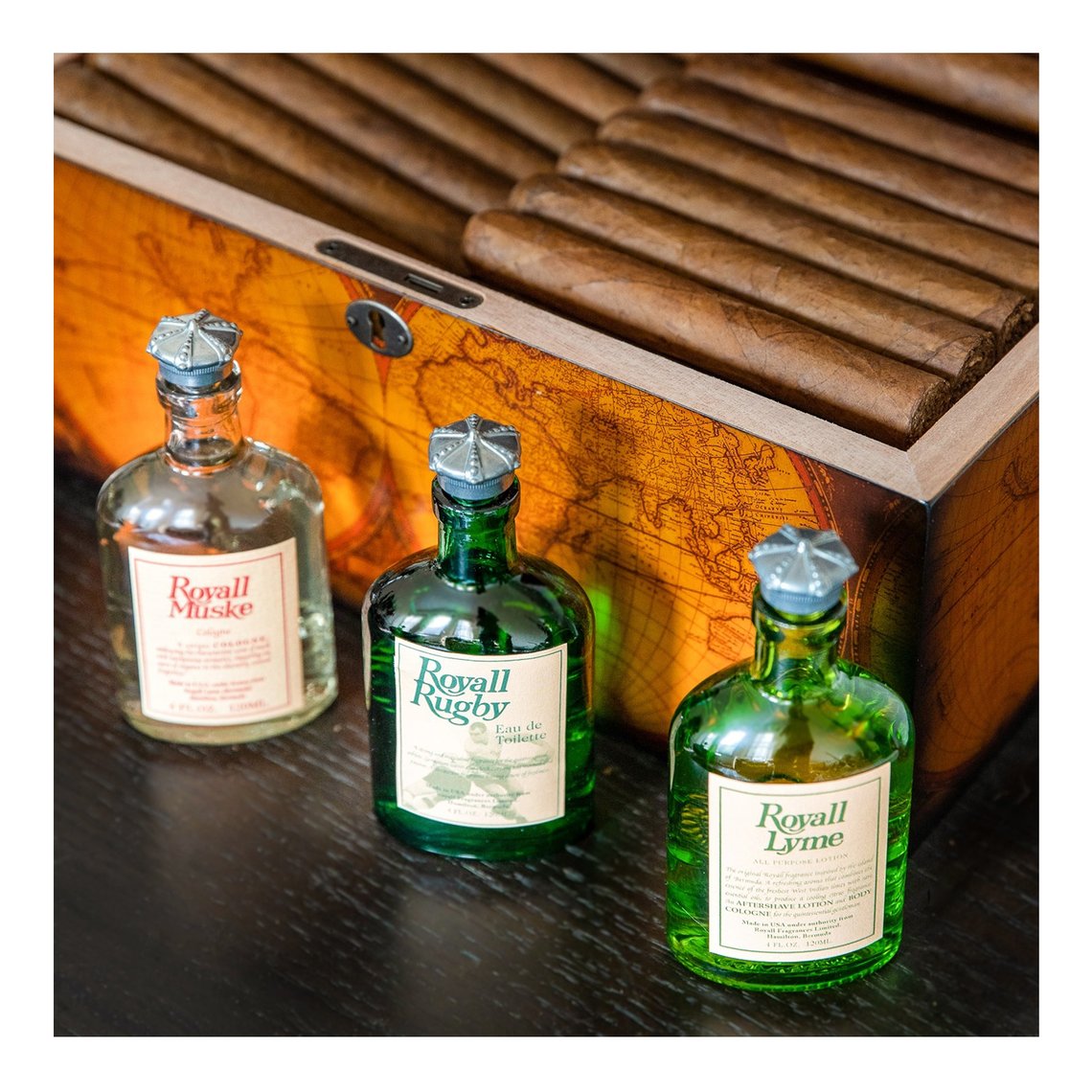 Royall Muske is a wonderfully exotic fragrance that intrigues the senses with its complex musk inspired notes. The harmonious notes of this masculine cologne are best experienced post-shave. The Cologne can also be added to bath water for a relaxing scented bath experience. The handsome packaging is reminiscent of the Bermuda of old. The moulded bottles are crafted from hand-made glass and feature pewter-coloured crown caps. The bottle is then individually wrapped in fine parchment with a crown wax seal. These rich seals are made with the same wax used by the Bank of England.