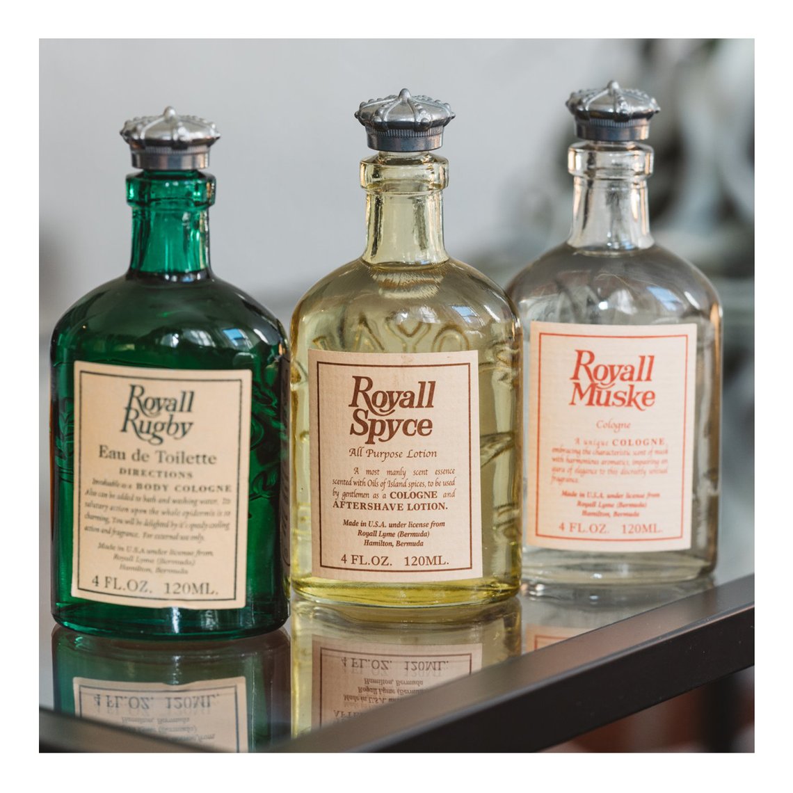 Royall Spyce is a fragrance redolent with the scent of clove, cinnamon, nutmeg and pepper that arrived from far-off markets into Bermuda's St. George Harbour. The aromatic composition follows a closely-guarded recipe that contains the world's finest essential oils. Prized for its warmth and most mysteriously manly appeal. For use as an after shave or body cologne. The handsome packaging is reminiscent of the Bermuda of old. The moulded bottles are crafted from hand-made glass and feature pewter-coloured crown caps. The bottle is then individually wrapped in fine parchment with a crown wax seal. These rich seals are made with the same wax used by the Bank of England.